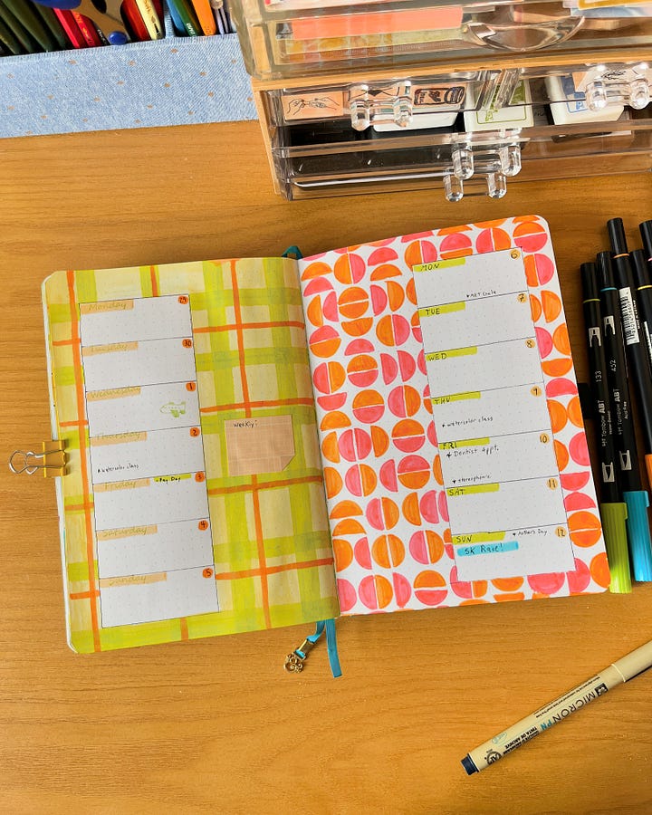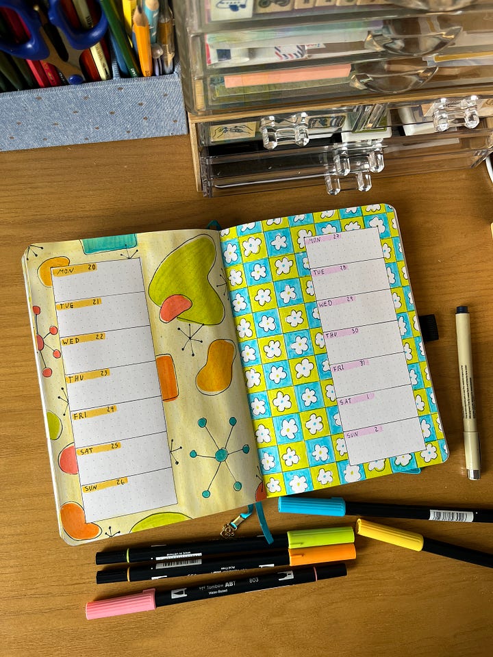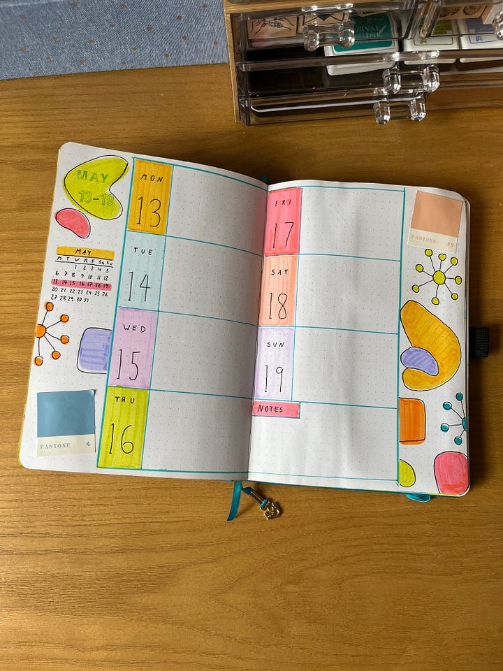 I have a thing for Mid-Century modern, and I went to Palm Springs in Mayâthis series of patterns for the month is the result. This is my favorite aesthetic and my favorite color palette. My May Bullet Journal Set Up tour.