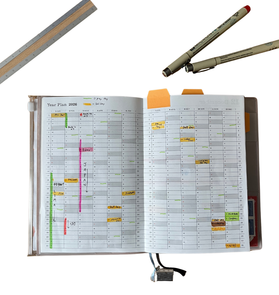 I determined this planner to be the best fit for me based on the format, size, and unbeatable lightness. I was especially charmed by the annual calendar in the front of the notebook—it reminded me of the Case Study yearly poster-sized calendar I have hanging in my living room.