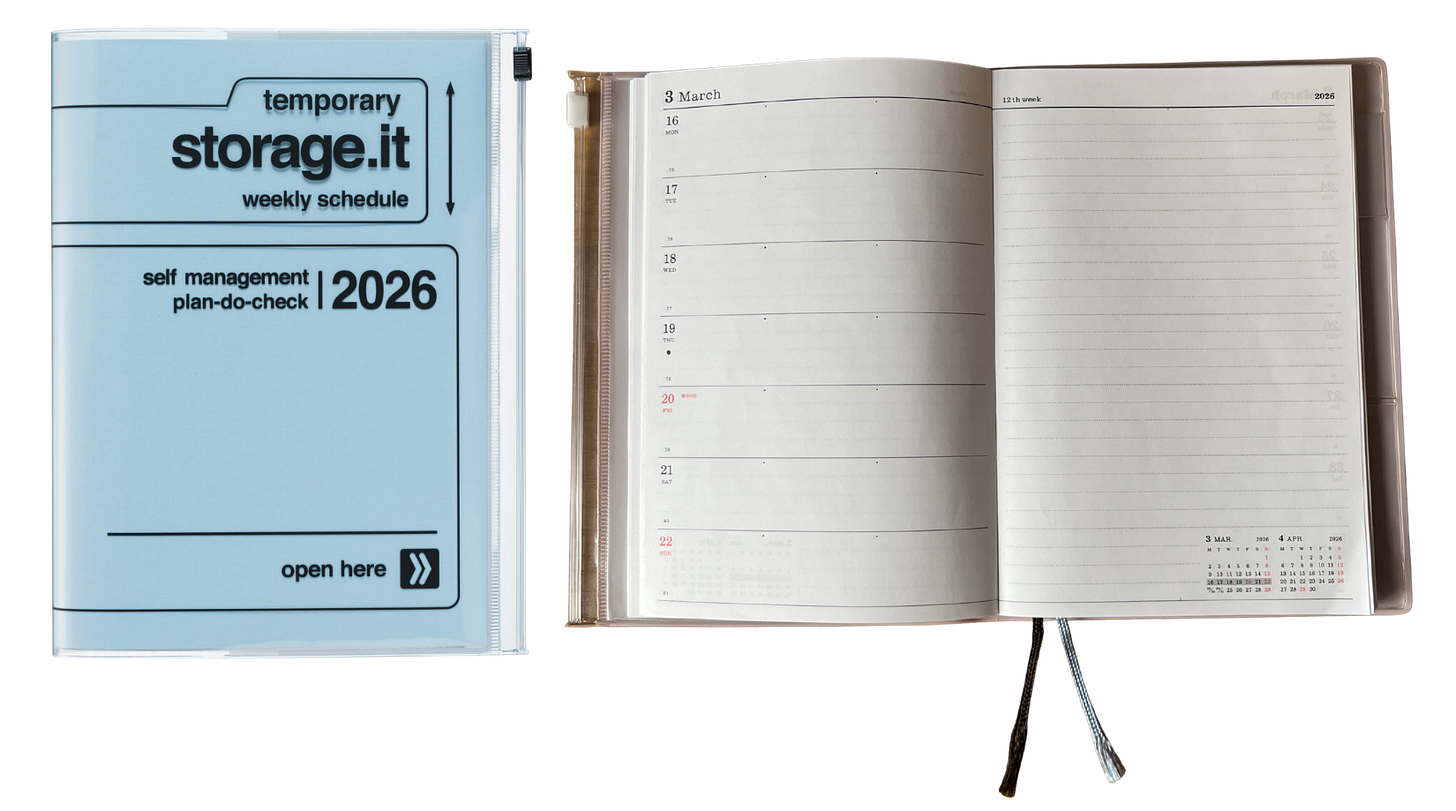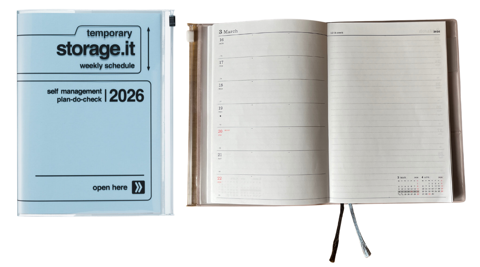 Below are the salient characteristics that resulted in my choice of the Mark’s Inc. (Japan) storage.it A6 weekly planner: